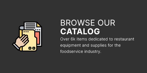 We have products ranging from back of the house to front of the house and everything in between including, chinaware, glassware, ice machines, oven ranges, refrigeration, small wares, disposables, restaurant furniture, janitorial supplies, and much more.