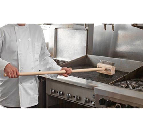 Chef-Master Grill Brush, heavy duty, 48” handle, 7-3/4” double-sided head, long stainless steel bristles, treated wooden handle & head (must be purchased in case quantities)