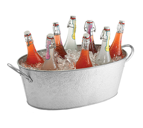 Galvanized Collection Beverage Tub, 4-2/5 gallon, 22-3/4” x 13-1/4” x 7-1/2”, oval, pebbled texture, hand wash only, galvanized steel (1 each minimum order)