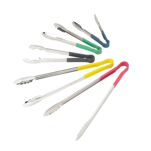 Utility Tongs, 16”, 1 pc., non-slip, heat resistant up to 220F, polypropylene coated handle, stainless steel, green (Qty Break = 6 each)